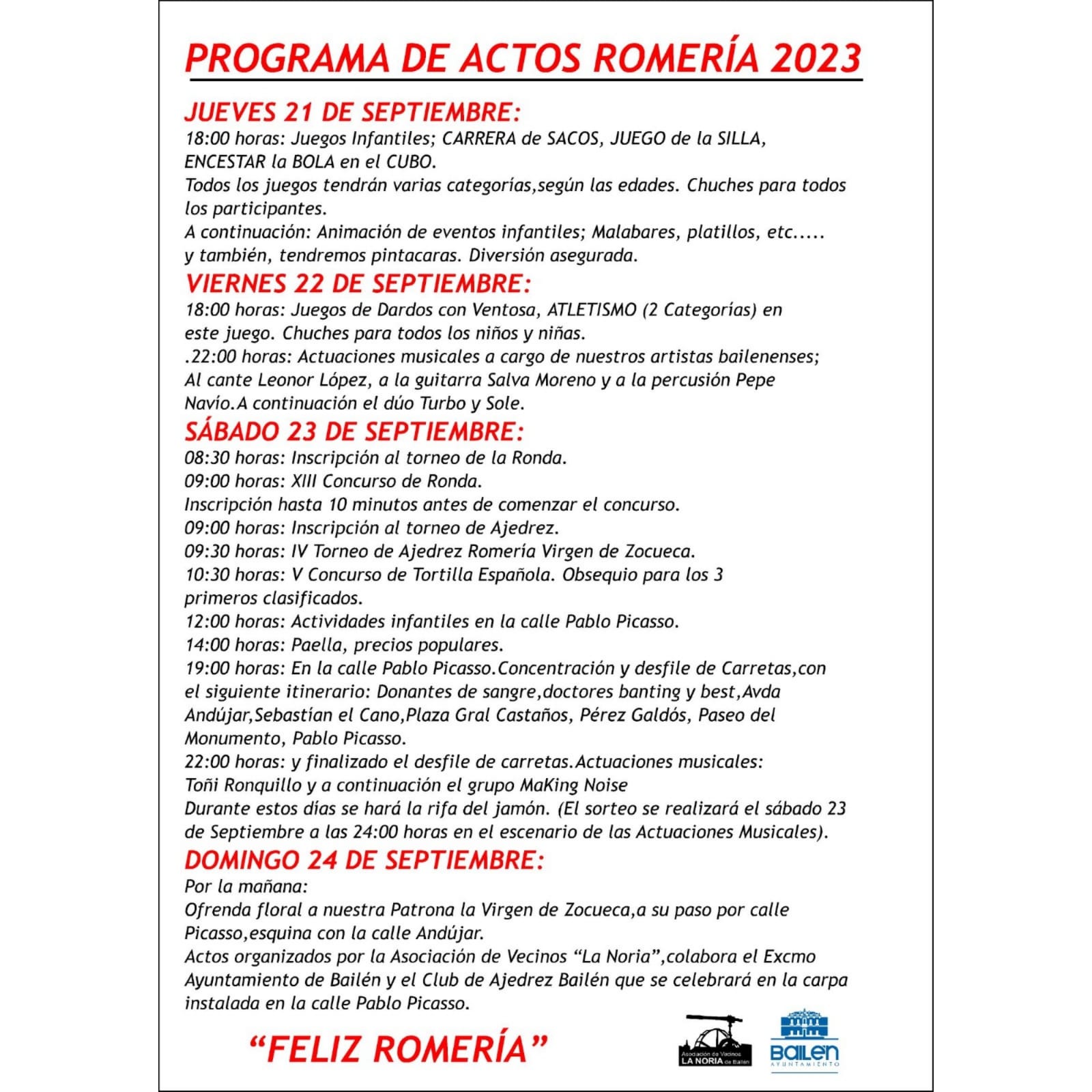 Viernes día 22 de septiembre a las 21:00 horas, Pregón a cargo de Pepi Reyes Mondejar, en C/ Nuestra Señora de Zocueca. Aldea de Zocueca.