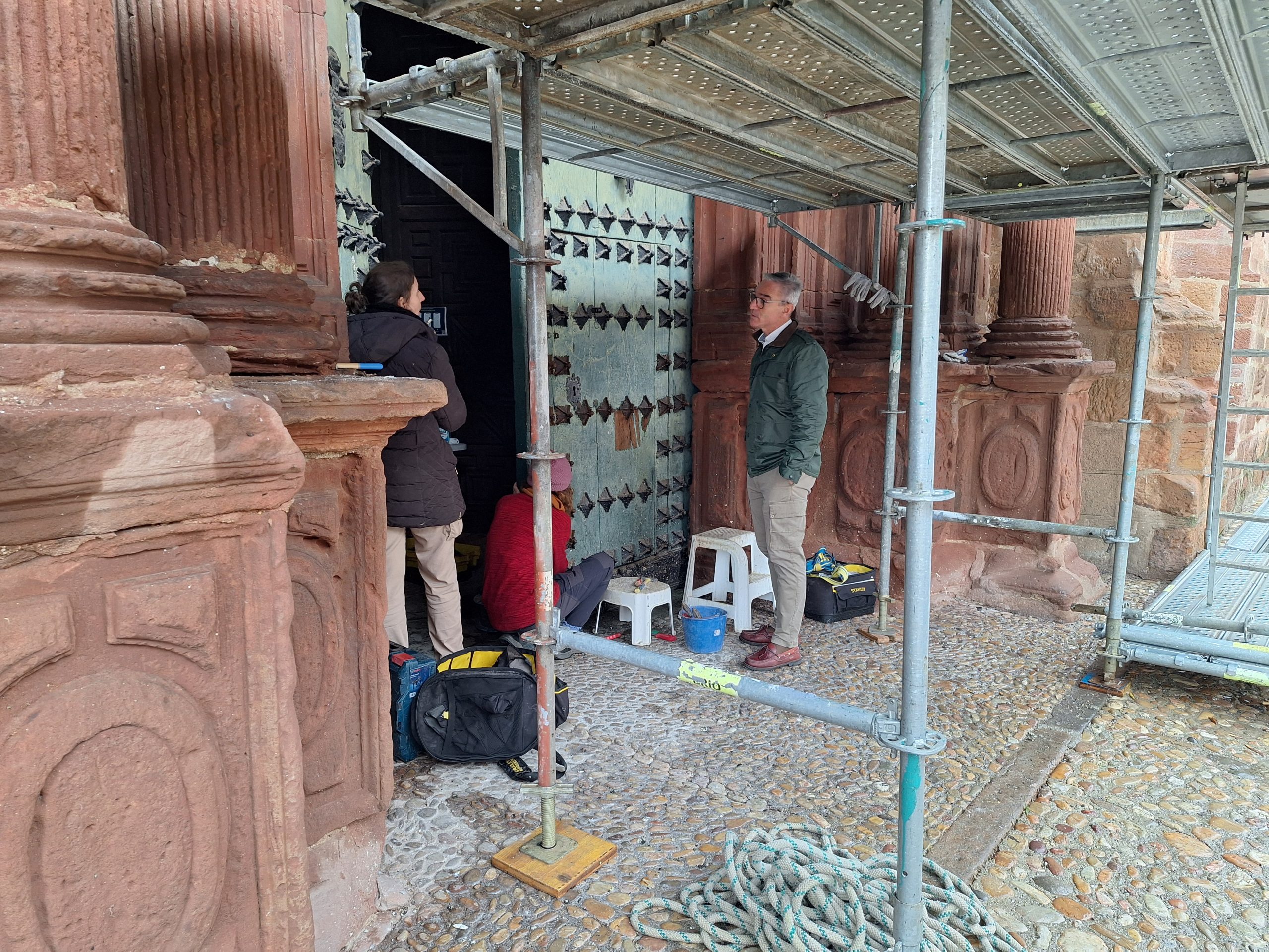 El alcalde de Bailén, Luis Mariano Camacho, ha mostrado su satisfacción tras el montaje de los andamios que preceden a lo que será el inicio de los trabajos de conservación y restauración de la fachada principal de la Iglesia de la Encarnación, así como del comienzo de la recuperación del portón del templo. “Es una alegría poder constatar que, finalmente, estas obras van a ser una realidad y demuestra que la colaboración entre instituciones (Iglesia, Ayuntamiento y Junta de Andalucía) está siendo fructífera”, destaca el primer edil en una visita realizada al templo para contemplar in situ las labores que ya se están acometiendo.