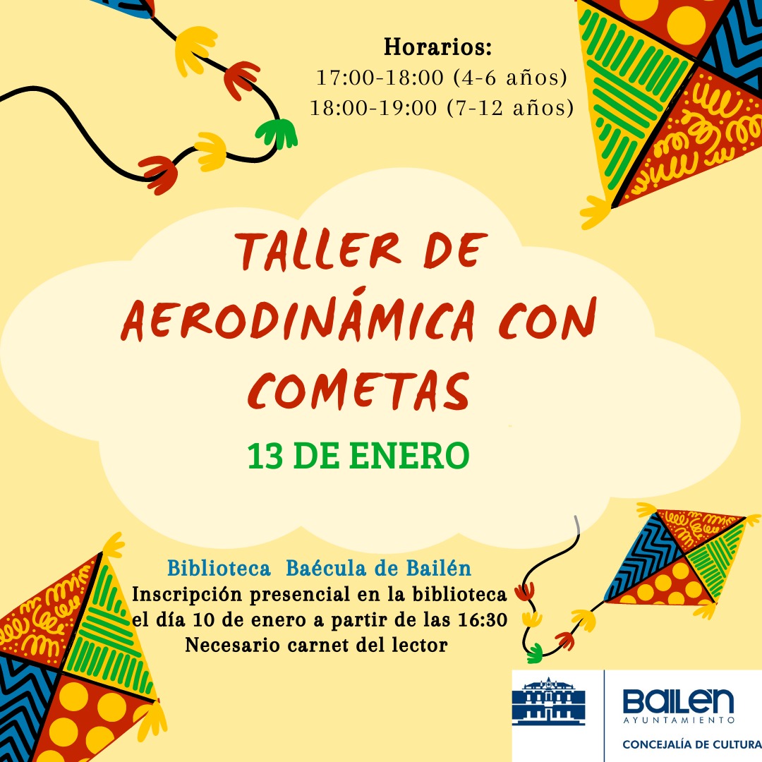El próximo día 14 de enero se celebra el Día Internacional de la Cometa, y con tal motivo la Concejalía de Cultura, a través de la Biblioteca Municipal de Bailén, va a realizar unos talleres de manualidades.