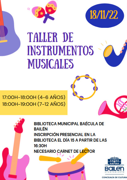 El próximo día 16 de noviembre se celebra el Día Internacional del Flamenco, y con tal motivo la Concejalía de Cultura, a través de la Biblioteca Municipal de Bailén, va a realizar unos talleres de manualidades bajo la temática de “Instrumentos Musicales”.