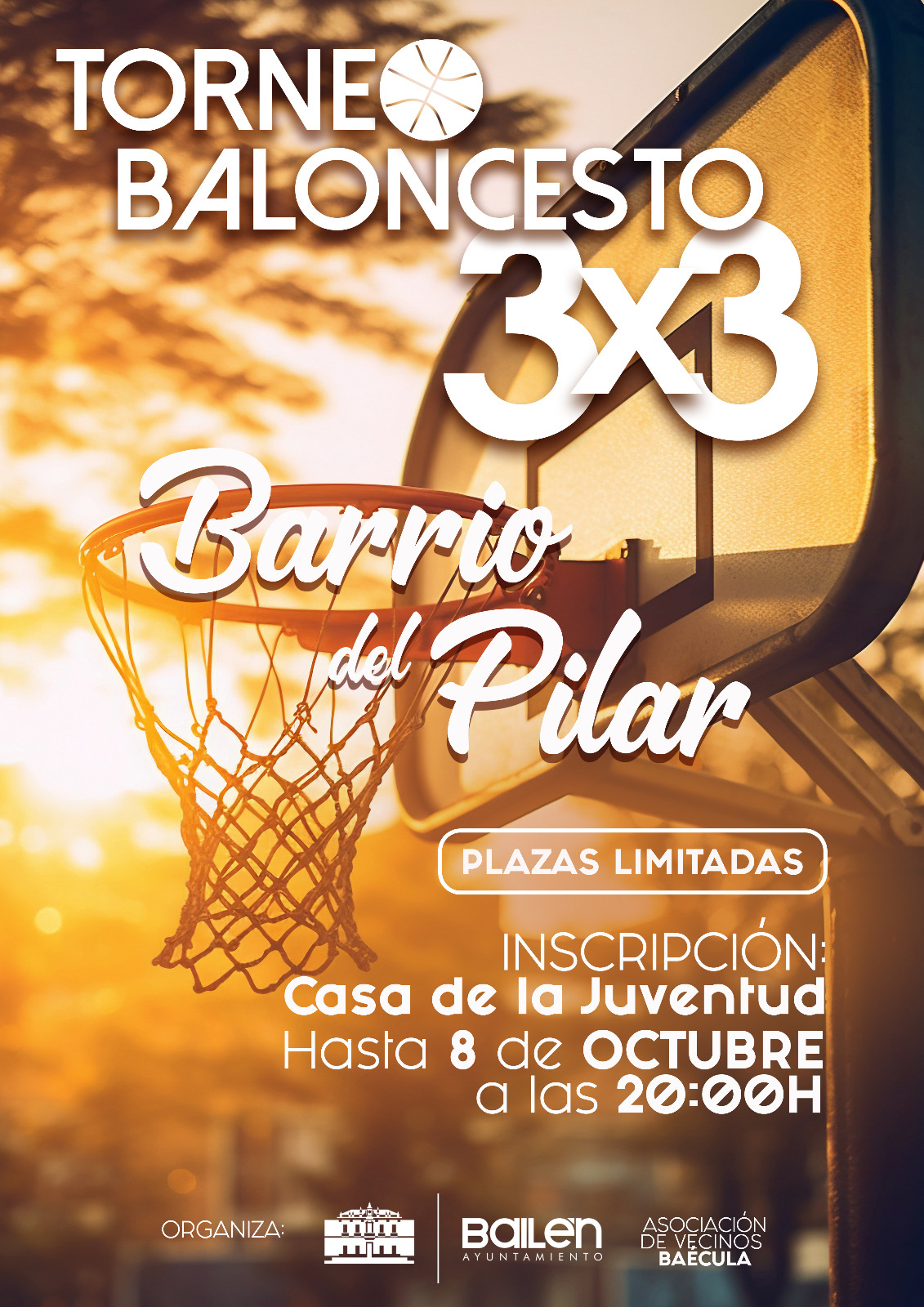 La concejalía del ayuntamiento de Bailén, que dirige Manuel Rodríguez, ha organizado el Torneo de Baloncesto 3×3 que tendrá lugar en el barrio del Pilar con motivo de su próxima celebración y ha contado con la colaboración de la Asociación de Vecinos Baécula.